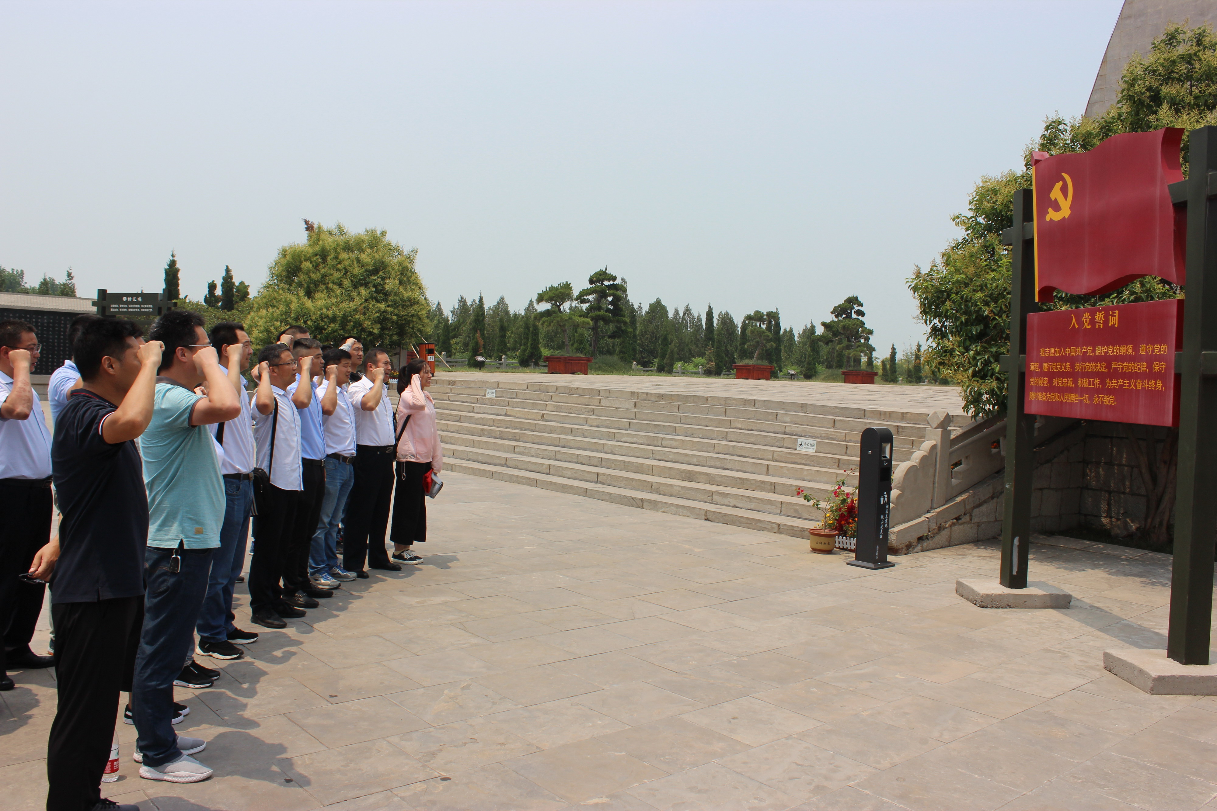 在鐵道游擊隊紀念碑前,黨員們面對鮮紅的黨旗,莊嚴的舉起右手,重溫入黨誓詞。“我志愿加入中國共產(chǎn)黨,擁護黨的綱領(lǐng),遵守黨的章程,履行黨員義務(wù)……隨時準備為黨和人民犧牲一切,永不叛黨。”一聲聲鏗鏘有力的誓言響徹微山湖鐵道游擊隊紀念園,表達了黨員們對黨的無限忠誠,對鐵道游擊隊英雄們的崇高敬意。