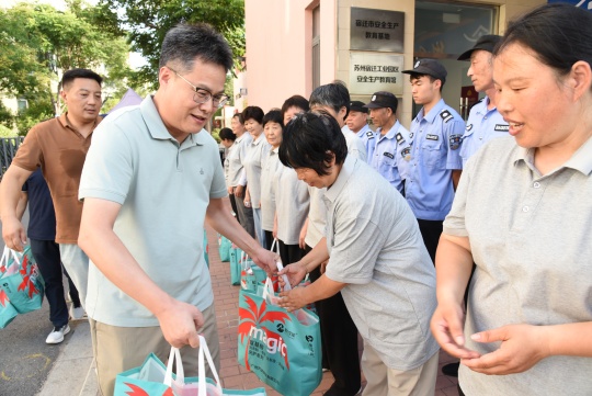 入伏以來,宿遷持續(xù)高溫晴熱天氣,給堅(jiān)守一線崗位的勞動(dòng)者帶來不小挑戰(zhàn)。為有效落實(shí)防暑降溫措施,切實(shí)保障一線員工身體健康與作業(yè)安全,7月24日,建發(fā)公司組織開展了一線員工高溫慰問活動(dòng)。公司副總經(jīng)理倪松、相關(guān)部門負(fù)責(zé)人參加了慰問。