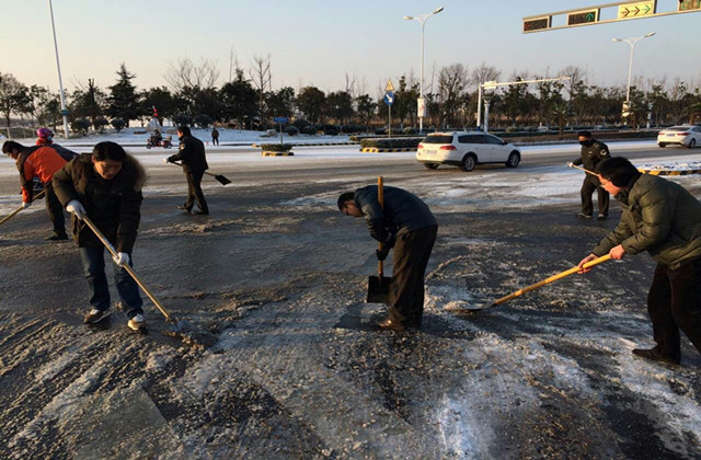 天寒地凍路積雪 掃雪除冰保暢通